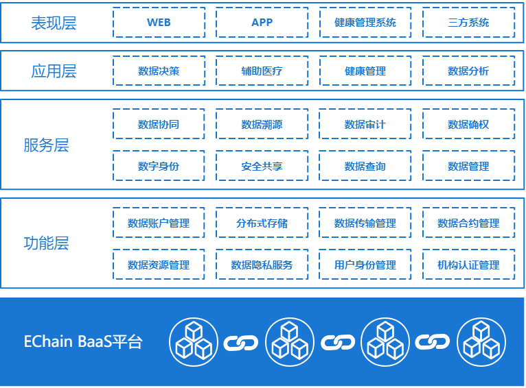 基于高性能、強(qiáng)隱私保護(hù)的易鏈云區(qū)塊鏈技術(shù)平臺(tái),為上層健康醫(yī)療業(yè)務(wù)應(yīng)用系統(tǒng)提供成熟、穩(wěn)定、安全的跨機(jī)構(gòu)、跨系統(tǒng)數(shù)據(jù)交換接口。不與醫(yī)院及醫(yī)療機(jī)構(gòu)現(xiàn)有系統(tǒng)強(qiáng)綁定,現(xiàn)有系統(tǒng)通過(guò)應(yīng)用程序接口接入易鏈云醫(yī)療數(shù)據(jù)系統(tǒng),實(shí)施簡(jiǎn)單,部署方便。易鏈云醫(yī)療數(shù)據(jù)系統(tǒng)支持用戶(hù)定制化開(kāi)發(fā)需求,能夠在不改變底層架構(gòu)的情況下,應(yīng)對(duì)上層應(yīng)用各種場(chǎng)景。